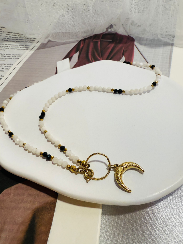 Zawieszka w kształcie półksiężyca otula duszę cichą magią nocy. 🌙✨