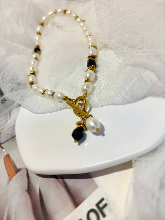 Naszyjnik z pereł hodowlanych i kamieni Noc Kairu — harmonia spokoju i głębokiej intuicji. Zawieszki z perełki i Noc Kairu symbolizują równowagę między światłem a cieniem.